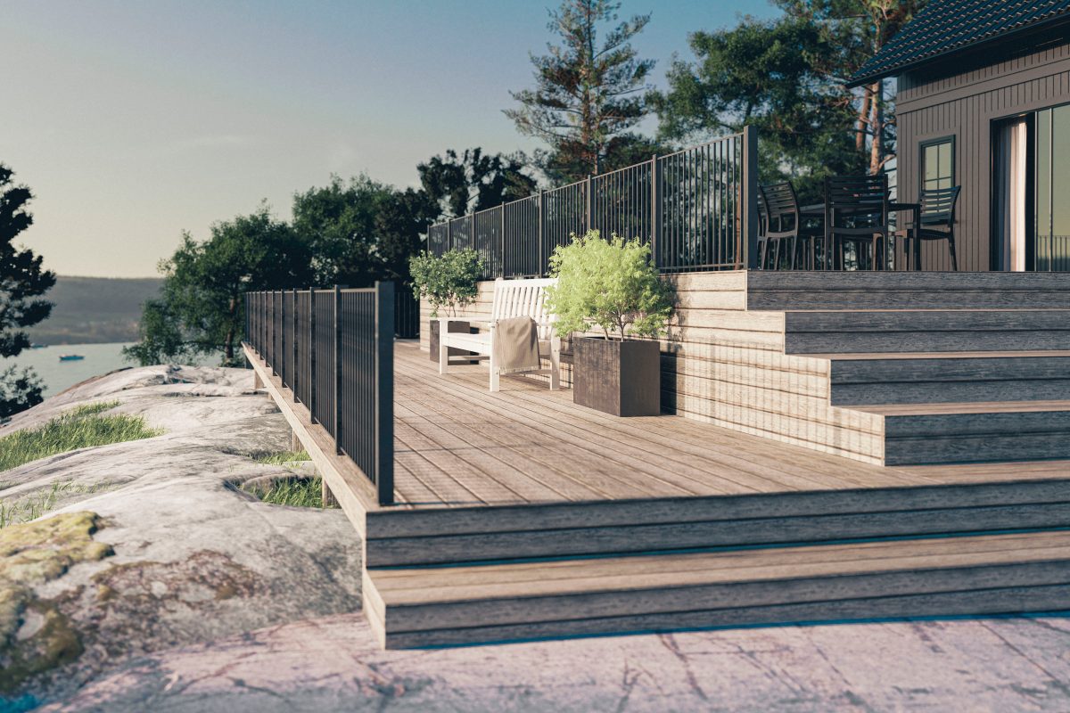 A ballot around the balcony, house or patio gives a classic and airy impression. Avoid maintenance and invest in a bar railing that will last for a long time to come. Made in Sweden in our own factory in Värnamo, we can of course solve special measurements if needed, contact us for more information.